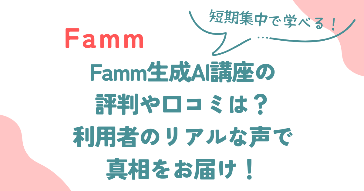 この記事では、Famm(ファム)で受講できる生成AI講座のリアルな口コミや評判をお伝えします。